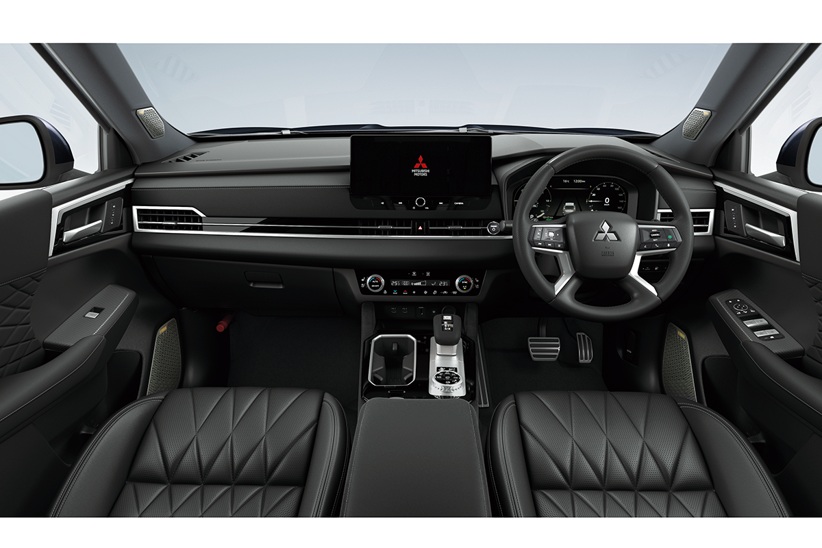 最上級グレードの「P Executive Package」をベースにグロスブラック塗装のルーフレールを追加し、20インチアルミホイールや前後スキッドプレート、電動格納式ドアミラーのほか、フロントグリルモールディング、ダイナミックシールドとフロントフォグランプベゼル、ヘッドライトベゼルをブラックで統一。また、スリーダイヤマークや車名バッジなどをダーク調とし、ウインドウモールディングではブラックステンレスを採用するなど、エクステリアの要所をブラック化することで、より上質で力強いスタイリングとしました。